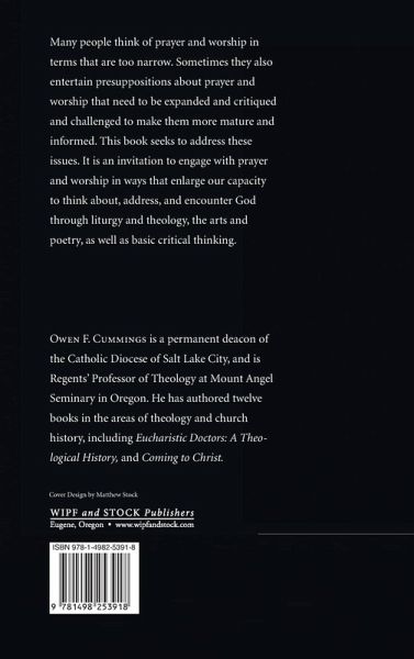 Many people think of prayer and worship in terms that are too narrow. Sometimes they also entertain presuppositions about prayer and worship that need to be expanded and critiqued and challenged to make them more mature and informed. This book seeks to address these issues. It is an invitation to engage with prayer and worship in ways that enlarge our capacity to think about, address, and encounter God through liturgy and theology, the arts and poetry, as well as basic critical thinking.