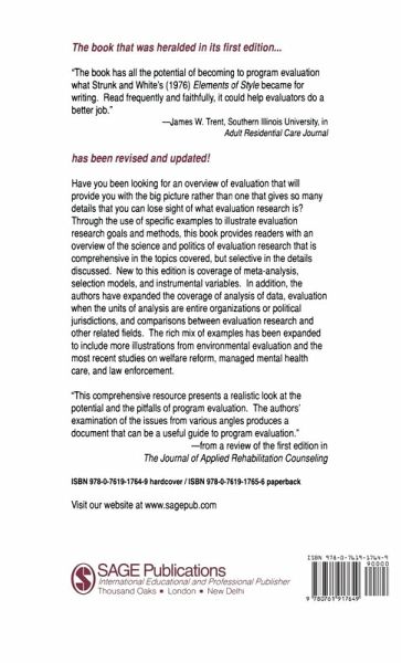 Through the use of specific examples to illustrate evaluation research goals and methods, Thinking About Program Evaluation provides readers with an overview of the science and politics of evaluation research. New to this edition is coverage of meta-analysis, selection models, and instrumental variables. In addition, the authors have expanded the coverage of analysis of data, evaluation when the units of analysis are entire organizations of political jurisdictions, and comparisons between evaluation research and other related fields. The rich mix of examples has been expanded to include more illustrations from environmental evaluation, and the most recent studies on welfare reform, managed mental health care, and law enforcement.