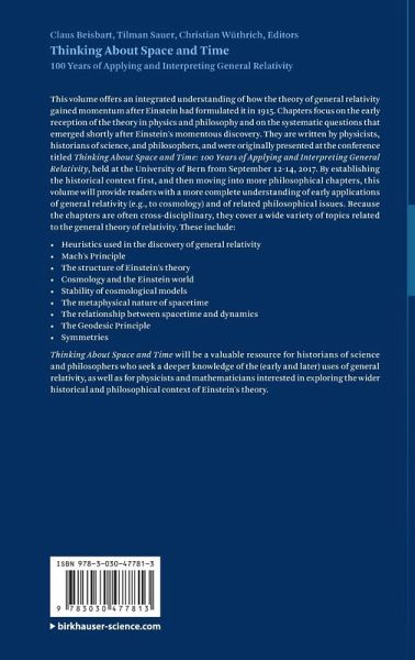 This volume offers an integrated understanding of how the theory of general relativity gained momentum after Einstein had formulated it in 1915. Chapters focus on the early reception of the theory in physics and philosophy and on the systematic questions that emerged shortly after Einstein's momentous discovery. They are written by physicists, historians of science, and philosophers, and were originally presented at the conference titled Thinking About Space and Time: 100 Years of Applying and Interpreting General Relativity, held at the University of Bern from September 12-14, 2017. By establishing the historical context first, and then moving into more philosophical chapters, this volume will provide readers with a more complete understanding of early applications of general relativity (e.g., to cosmology) and of related philosophical issues. Because the chapters are often cross-disciplinary, they cover a wide variety of topics related to the general theory of relativity. Theseinclude:Heuristics used in the discovery of general relativityMach's PrincipleThe structure of Einstein's theoryCosmology and the Einstein worldStability of cosmological modelsThe metaphysical nature of spacetimeThe relationship between spacetime and dynamicsThe Geodesic PrincipleSymmetriesThinking About Space and Time will be a valuable resource for historians of science and philosophers who seek a deeper knowledge of the (early and later) uses of general relativity, as well as for physicists and mathematicians interested in exploring the wider historical and philosophical context of Einstein's theory.