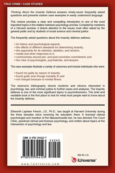 Thinking About the Insanity Defense answers ninety-seven frequently asked questions and presents sixteen case examples in easily understood language. This volume provides a clear and compelling introduction to one of the most important topics in the relation between psychology and law. Compiled by members of a Harvard seminar, it directs attention to the issues most often raised by the general public and by students of social science and criminal justice. The frequently asked questions about the insanity defense address: · its history and psychological aspects; · the effects of different standards for determining insanity; · the arguments for its retention, abolition, and revision; · media and other responses to it; · controversies around pre- and post-conviction commitment; and · the roles of psychologists, psychiatrists, and lawyers. The case examples illustrate a variety of outcomes and include individuals who were: · found not guilty by reason of insanity; · found guilty even though mentally ill; and · not charged because of mental illness. The extensive bibliography directs students and citizens interested in psychology, law, and criminal justice to further cases and analyses. The insanity defense is one of the most significant topics in psychoforensics. This brief and readable book is the first place to look for what most people want to know about the insanity defense.