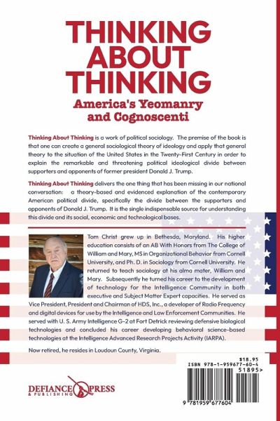 Thinking About Thinking is a work of political sociology. The premise of the book is that one can create a general sociological theory of ideology and apply that general theory to the situation of the United States in the Twenty-First Century in order to explain the remarkable and threatening political ideological divide between supporters and opponents of former president Donald J. Trump. Thinking About Thinking delivers the one thing that has been missing in our national conversation: a theory-based and evidenced explanation of the contemporary American political divide, specifically the divide between the supporters and opponents of Donald J. Trump. It is the single indispensable source for understanding this divide and its social, economic and technological bases.