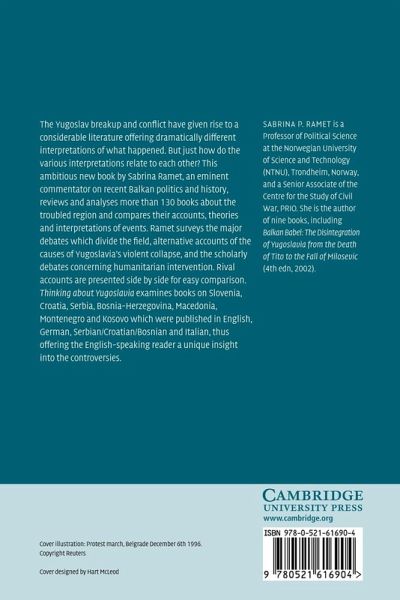 The Yugoslav break up and conflict have given rise to a considerable literature offering dramatically different interpretations of what happened. But just how do the various interpretations relate to each other? This ambitious new book by Sabrina Ramet, an eminent commentator on recent Balkan politics and history, reviews and analyses more than 130 books about the troubled region and compares their accounts, theories, and interpretations of events. Ramet surveys the major debates which divide the field, alternative accounts of the causes of Yugoslavia's violent collapse, and the scholarly debates concerning humanitarian intervention. Rival accounts are presented side by side for easy comparison. Thinking about Yugoslavia examines books on Slovenia, Croatia, Serbia, Bosnia-Herzegovina, Macedonia, Montenegro, and Kosovo which were published in English, German, Serbian/Croatian/Bosnian, and Italian, thus offering the English-speaking reader a unique insight into the controversies.