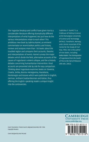 The Yugoslav break up and conflict have given rise to a considerable literature offering dramatically different interpretations of what happened. But just how do the various interpretations relate to each other? This ambitious new book by Sabrina Ramet, an eminent commentator on recent Balkan politics and history, reviews and analyses more than 130 books about the troubled region and compares their accounts, theories, and interpretations of events. Ramet surveys the major debates which divide the field, alternative accounts of the causes of Yugoslavia's violent collapse, and the scholarly debates concerning humanitarian intervention. Rival accounts are presented side by side for easy comparison. Thinking about Yugoslavia examines books on Slovenia, Croatia, Serbia, Bosnia-Herzegovina, Macedonia, Montenegro, and Kosovo which were published in English, German, Serbian/Croatian/Bosnian, and Italian, thus offering the English-speaking reader a unique insight into the controversies.
