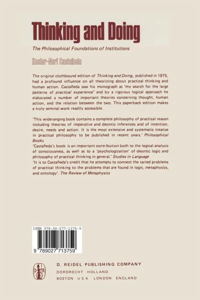 Philosophy is the search for the large patterns of the world and of the large patterns of experience, perceptual, theoretical, . . . , aesthetic, and practical - the patterns that, regardless of specific contents, characterize the main types of experience. In this book I carry out my search for the large patterns of practical experience: the experience of deliberation, of recognition of duties and their conflicts, of attempts to guide other person's conduct, of deciding to act, of influencing the physical world with one's doings, and the like. This is the experience that makes possible our social life, the formulation of plans for teamwork, the building of institutions, the development of nations, and the adoption of the ideal of morality. Here I develop a network of theories about the most fundamental aspects of practical thinking: what is thought in such thinking; what makes that thinking correct; what makes it practical; and the structure of the doings that accrue to the worldwhen such thinking is effective. I have attempted to build each theory in sufficient detail, so that it il luminates its subject matter with a certain degree of fullness. But I have also aimed at producing an harmonious system of theories, so that the grand pattern of practical thinking can be admired, not only for the beauty of the separate structures of its parts, but also for its architectonic unity. Chapter 1 gives the details of the many facets of this project and discusses some methodological techniques.