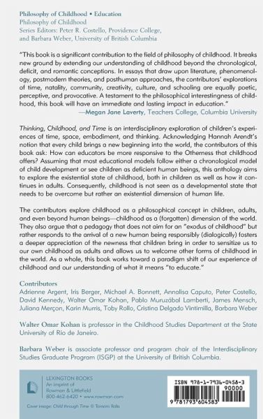 Acknowledgments Part One: Phenomenological Explorations of Time, Thinking and Embodiment Chapter 1: Childhood and the Genesis of Time: A Phenomenological Approach James Mensch Chapter 2: Child and Time: A Phenomenological Journey into the Human Conditions of Education Barbara Weber Chapter 3: Think Like a Girl: Scout's Time and Experience in To Kill a Mockingbird Peter Costello Chapter 4: Listening, Phronein and the First Principle of Happiness Pablo Muruzábal Lamberti Chapter 5: Thinking and the Play of Being Michael A. Bonnett Chapter 6: Philosophia Ludens for Children: A Proposal to Play and to Think Annalisa Caputo Part Two: Decolonial and Postructuralist Perspectives on the Politics of Education Chapter 7: Becoming Child: Wild Being and the Post-Human David Kennedy Chapter 8: Paulo Freire and the Childhood of a Philosophical and Educational Life Walter Omar Kohan Chapter 9: Democratic Child's Play: Natality, Responsible Education, and Decolonial Praxis Toby Rollo Chapter 10: