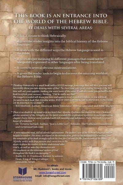 who was preached to you before, whom heaven must receive until the times of restoration of all things, which God has spoken by the mouth of all His holy prophets since the world began¿ (Acts 3:19- 21). God is restoring much today. We will be discussing some of those things. Primarily He is restoring the foundation, which is rooted in our forefathers. Isaiah 51:1, 2 says, -Listen to Me, you who follow after (or pursue) righteousness, you who seek the Lord. Look to the rock from which you were hewn…. Look to Abraham your father and Sarah who bore you.¿ So Abraham and Sarah are the father and mother to whom we are to look. That means, in the Lord we have a father and a mother. Isaiah is speaking to those -who follow after righteousness. If you wish to follow after righteousness, that applies to you. The Scriptures say to honor your mother and father so that things will go well for you (Exodus 20:12). Many believers teach about curses passing from generation to generation, even curses from the fathers passing to third and fourth generations. But not many people talk about the blessings of generations, even back to the blessings of the forefathers. My personal story relating to the blessings of the forefathers began in 1998 with a strong desire to begin looking into Hebrew. I was born Thinking Hebraically and raised in the Soviet Union – primarily a god-less country. Even though I was Jewish, I had no typical Jewish upbringing and was estranged from the tenets of Judaism. I met the Lord shortly after immigrating to USA and from that point on my life took another direction and I found myself on a road to discovery of my Hebraic (Jewish) heritage. In 1998 I was in Israel for a visit, and I felt the Lord wanted me to buy a Hebrew English Bible and begin to read it. I did not have a lot of knowledge of Hebrew at that time. It took me about three years just to read through the Torah, the first five books of Moses. Then I started to reread it again, and a whole new world began to open up that I had not seen before. Amazing pictures and patterns began to emerge on the pages. I had not seen these reading the Bible in either English or Russian, which is my mother tongue, having been born in Ukraine. Then in 2005 I was in Israel again and at a Messianic service where familiar songs were being sung in three languages; English, Russian and Hebrew. By this time, I understood all three languages. When sung in Russian and English, the songs were very nice and they were special, but when they were sung in Hebrew, I wanted to cry. So I began to wonder, what is it about this Hebrew language that is different from all the other languages? Then the Lord began to explain it to me. He told me, -It is time for you to understand why it is in your heart to learn the Hebrew language. If you think the reason is so you can read the Scriptures and understand, that is a good reason, but it is not the main reason. One day you will live in Israel, but it is still not the main reason. The main reason is that what has been cut off from your forefathers is being restored to you. I began to understand that the work of the enemy has been to cut off that which was built by the forefathers but in which we today must learn to stand. The blessings of the forefathers must pass from generation to generation. God wanted to reconnect me to the former generations, all the way back to the forefathers – meaning to Abraham, Isaac and Jacob. Through them Thinking Hebraically God built a foundation upon which everything else stands. He told me, -If you do not stand on that foundation, you will not fulfill your purpose and calling. I offer you these insights with the hope that they will help you to fulfill your own calling in the Lord through His truths