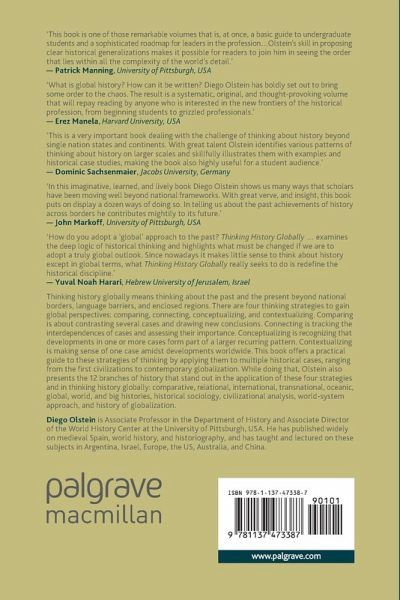 The book brings together many recent trends in writing history under a common framework: thinking history globally. By thinking history globally, the book explains, applies, and exemplifies the four basic strategies of analysis, the big C's: comparing, connecting, conceptualizing, and contextualizing, using twelve different branches of history.