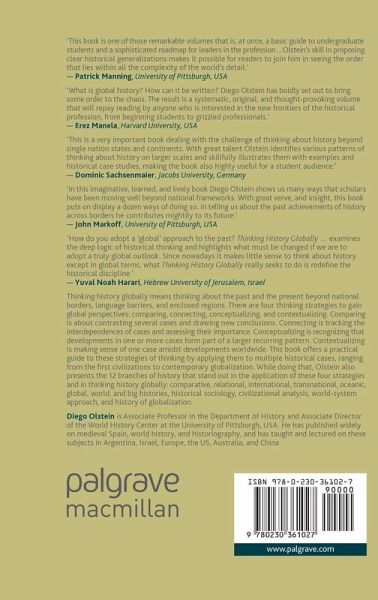 The book brings together many recent trends in writing history under a common framework: thinking history globally. By thinking history globally, the book explains, applies, and exemplifies the four basic strategies of analysis, the big C's: comparing, connecting, conceptualizing, and contextualizing, using twelve different branches of history.
