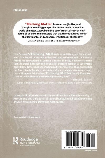 Thinking Matter is an original and provocative look at the nature of consciousness. While many contemporary philosophers have downplayed the significance of the body and subscribed to a brain/body dualism in human consciousness, Joseph S. Catalano argues that it is the entire fleshy body that thinks; the body of the dancer, the hands of the writer, and the eyes of the reader are not merely instruments of thought, but forms of thought itself. Calling for a thorough rethinking of philosophic traditions from Aristotle to Sartre, Catalano offers a holistic view of the bodily nature of consciousness--one that focuses on the total organic body rather than the brain alone.