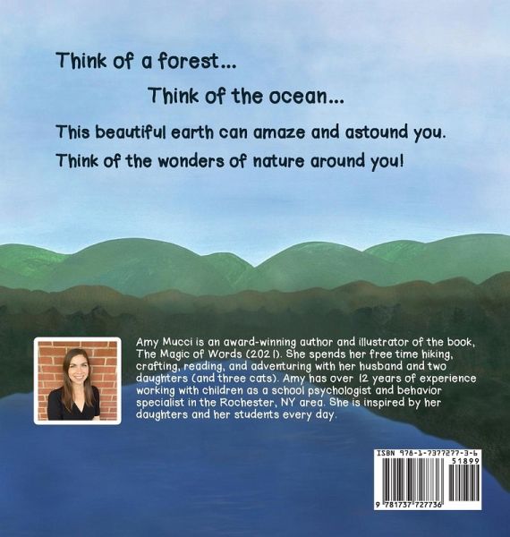 Thinking of Nature received 5 stars from Reader's Favorite: "Thinking of Nature was a joy to read. I love reading books that showcase the beauty of nature. It inspired me and sparked my creativity from the very first page, and I know it will do the same for children too. Amy Mucci is a talented author and has done an excellent job of creating an educational and fun book that young readers will love." - Amy Louise Hill Thinking of Nature received 5 stars from Reedsy Discovery: "When we hear keywords like a flower, mountain, sky, forest, and ocean, our mind paints a picture of how we "see" them. Each section in Thinking of Nature by Amy Mucci asks the reader/listener to think of various objects found in nature. These open-ended questions should lead to a discussion. Let's not just read the book...live the story. As a parent and teacher, I can't wait to share this book with my child. I hope you will share it with your child or classroom. Thinking of Nature by Amy Mucci is thought-provoking and beautifully written with lovely illustrations. Well done, Amy Mucci, on being the author and illustrator behind the masterpiece!" - Kameron Brook Thinking of Nature: This beautiful earth can amaze and astound you. Think of the wonders of nature around you! Teach children to appreciate the beauty of the natural world as they explore nature through this thought-provoking book! Engaging illustrations and rhyming text make this a perfect gift for anyone who loves the outdoors. From the smell of the rain to the buzzing of bees, this book encourages readers to be mindful and curious as they discover the joys of outside. Discussion questions at the end of the book inspire children to further reflect on what nature means to them. Visit www.brightwishbooks.com for fun nature-inspired activities, worksheets, and coloring pages.