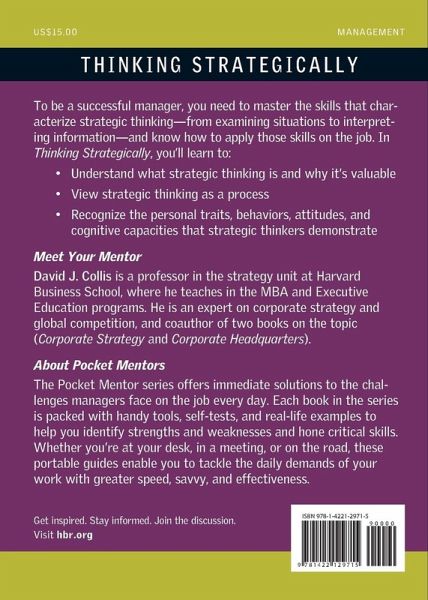To be a successful manager, you need to master the skills that characterize strategic thinking from examining situations to interpreting information and know how to apply those skills on the job. This title helps you learn to: understand what strategic thinking is and why it is valuable; and view strategic thinking as a process.