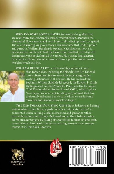 Are you a Red Sneaker Writer? Why do some books linger in memory long after they are read? Why are some books reread, recommended, shared in the classroom? How can you add your book to this distinguished company? The key is theme, giving your story a dynamic idea that lends it power and purpose. William Bernhardt explains what theme is, how it is best revealed, and how to find the theme that, handled correctly, will distinguish your book from all the others. Plus, in the final chapter, Bernhardt explains how your book can have a positive impact on the world in which you live.