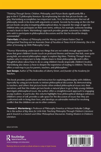 Thomas Wartenberg understands two things that are not widely enough appreciated. He know that great children's books touch on profound themes and knows that kids, even quite young kids, are natural philosophers eager to explore big ideas. Thinking Through Stories explains why it is important to help children learn to think philosophically and it offers thoughtful advice about how to do so using children's books (especially children's books). Wartenberg also shows us how to deepen the experience of reading to children. The book offers a road map to joy for parents, teachers, and philosophers.