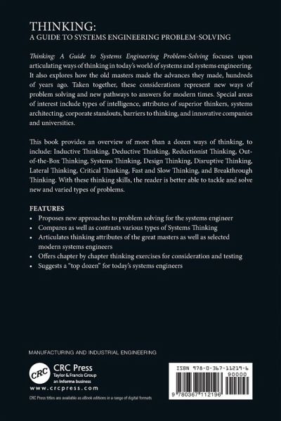 Thinking: A Guide to Systems Engineering Problem-Solving focuses upon articulating ways of thinking in today's world of systems and systems engineering. It also explores how the old masters made the advances they made, hundreds of years ago. Taken together, these considerations represent new ways of problem solving and new pathways to answers for modern times. Special areas of interest include types of intelligence, attributes of superior thinkers, systems architecting, corporate standouts, barriers to thinking, and innovative companies and universities. This book provides an overview of more than a dozen ways of thinking, to include: Inductive Thinking, Deductive Thinking, Reductionist Thinking, Out-of-the-Box Thinking, Systems Thinking, Design Thinking, Disruptive Thinking, Lateral Thinking, Critical Thinking, Fast and Slow Thinking, and Breakthrough Thinking. With these thinking skills, the reader is better able to tackle and solve new and varied types of problems. Features Proposes new approaches to problem solving for the systems engineer Compares as well as contrasts various types of Systems Thinking Articulates thinking attributes of the great masters as well as selected modern systems engineers Offers chapter by chapter thinking exercises for consideration and testing Suggests a "top dozen" for today's systems engineers