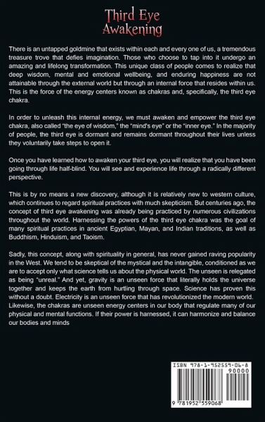 There is an untapped goldmine that exists within each and every one of us, a tremendous treasure trove that defies imagination. If you want to discover this, then keep reading...Do you often feel overwhelmed, exhausted, and emotionally drained? Do you often ask yourself why you're not happy? Do you have difficulty staying in relationships or gravitate toward unhealthy attractions? Do you tend to overthink and worry too much about the future? Are you becoming increasingly cynical and feeling at odds with the world? Do you sometimes wonder why you are here, and what life is all about? Or - are you generally happy in your life but still wonder what it's all about? Your dormant third eye is most likely the cause. How do you feel about learning how to open it and transform your life? Since the beginning of human history, the third eye chakra has been recognized and revered by ancient cultures as a powerful entity that is the gateway from the physical world into the non-physical world. It has been described as "the seat of the soul", "the eye of wisdom", "the inner eye", and "the mind's eye". Awakening the third eye to harness its amazing powers has long been the pursuit of many spiritual schools, including Buddhism and Hinduism. Today, it remains the pursuit of those seeking happiness, health, and wellbeing. When awakened, the third eye allows us to fathom into the non-physical (but very real) spiritual realm, where we can find the true enrichment and purpose that we lack. This is the realm of our higher consciousness where we can claim our deepest intuition, our highest wisdom, and inner abundance to become healthier, more productive, and happier human beings. Today, slowly but surely, science has begun to confirm this. This book is a step-by-step guide that contains all you need to know about your inner eye and the steps required to awaken it. This is not your typical book on spirituality. This is a book about "actionable spirituality", meaning that you will learn very real and effective techniques to awaken, empower, and nurture your dormant third eye. After all, what good are vague theories and spiritual platitudes if you can't apply them to get tangible results? You will learn: How to awaken your third eye to bring your physical and spiritual body into harmony, empowering you to live as your highest possible self. How the amazing and mysterious pineal gland is related to your third eye. Basic groundwork techniques for opening the third eye. Powerful meditations for opening and balancing the third eye. How to nurture your third eye with diet, crystals, color, essential oils and affirmations. How to balance the chakra system. Preparing yourself for the spiritual gifts of psychic dreams, seeing auras and clairvoyance. How to see and read auras. How to interpret psychic dreams and intuitive messages. And much more, including visualizations, lifestyle changes, and simple tips and methods to add to your routine. It's unfortunate that many people are skeptical of the spiritual aspect of our being and the role it can play in reconnecting us with ourselves and with the world around us. The powerful takeaways and the results you will experience will make this very clear. This book will take you on a magnificent adventure that will end with you experiencing inner peace, incredible wisdom, immense gratitude, and the discovery of realms you never knew existed. Start the journey that will transform your life forever, by buying this book now!
