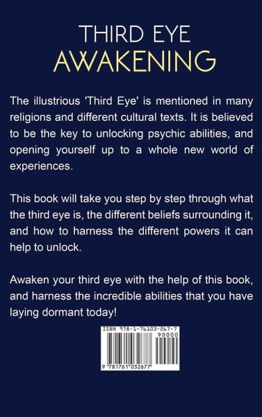 THIRD EYE AWAKENING The third eye is essentially a 'hidden' eye, said to be situated between your brows. It makes mention is several religions and spiritual traditions, and is said to possess certain powers. These powers allow people to have psychic-type experiences, where they may connect with a spiritual entity, communicate with a spirit guide, have some sort of out of body experience, or experience a range of other unusual occurrences. This book will explain to you exactly what the third eye is according to a range of different beliefs, and what kinds of powers it can unlock. You will soon discover a step-by-step process for how to open your third eye, and greatly develop your psychic abilities! Here Is What You'll Learn About... What Is The Third Eye What Are The Psychic Abilities Signs That you Have Psychic Abilities Methods For Psychic Development How To Awaken The Third Eye How To Keep your Pineal Gland Healthy The Chakras & The Third Eye Much, Much More!
