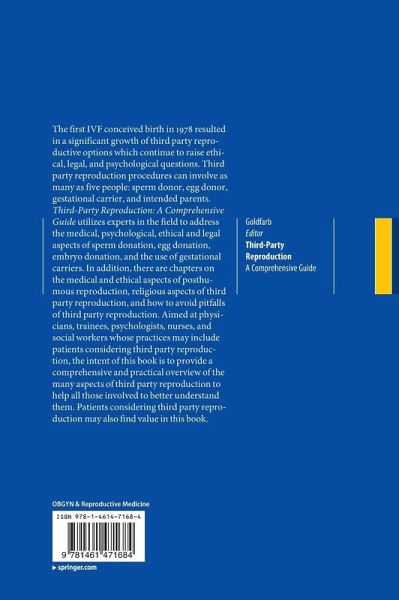 The first IVF conceived birth in 1978 resulted in a significant growth of third party reproductive options which continue to raise ethical, legal, and psychological questions. Third party reproduction procedures can involve as many as five people: sperm donor, egg donor, gestational carrier, and intended parents. Third-Party Reproduction: A Comprehensive Guide utilizes experts in the field to address the medical, psychological, ethical and legal aspects of sperm donation, egg donation, embryo donation, and the use of gestational carriers. In addition, there are chapters on the medical and ethical aspects of posthumous reproduction, religious aspects of third party reproduction, and how to avoid pitfalls of third party reproduction. Aimed at physicians, trainees, psychologists, nurses, and social workers whose practices may include patients considering third party reproduction, the intent of this book is to provide a comprehensive and practical overview of the many aspects of third party reproduction to help all those involved to better understand them. Patients considering third party reproduction may also find value in this book.