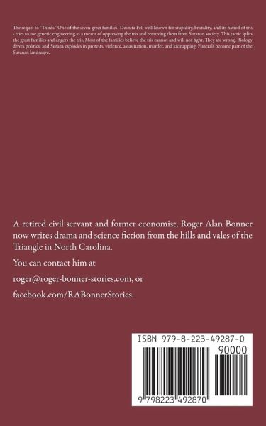 The sequel to "Thirds." One of the seven great families- Destuta Fel, well-known for stupidity, brutality, and its hatred of tris - tries to use genetic engineering as a means of oppressing the tris and removing them from Suranan society. This tactic splits the great families and angers the tris. Most of the families believe the tris cannot and will not fight. They are wrong. Biology drives politics, and Surana explodes in protests, violence, assasination, murder, and kidnapping. Funerals become part of the Suranan landscape.