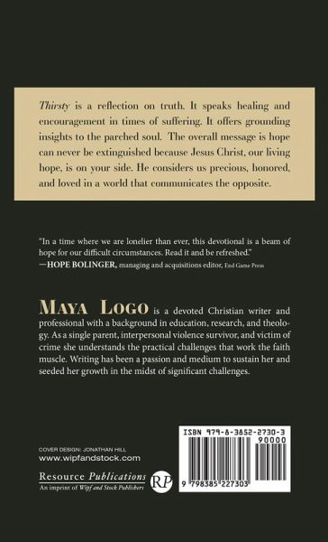 Thirsty is a reflection on truth. It speaks healing and encouragement in times of suffering. It offers grounding insights to the parched soul. The overall message is hope can never be extinguished because Jesus Christ, our living hope, is on your side. He considers us precious, honored, and loved in a world that communicates the opposite.