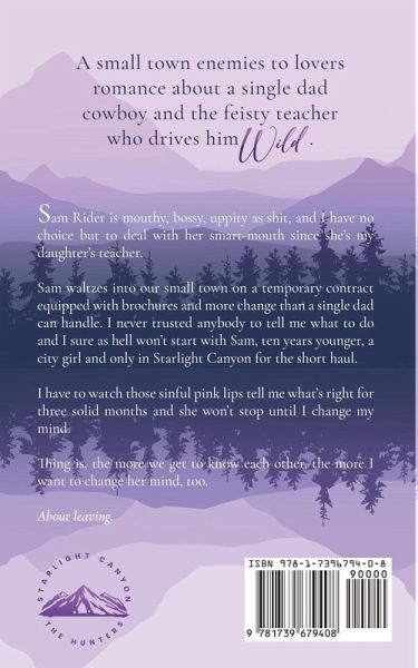 A small town enemies to lovers romance about a single dad cowboy and the feisty teacher who drives him wild. Sam Rider is mouthy, bossy, uppity as shit, and I have no choice but to deal with her smart-mouth since she's my daughter's teacher. Sam waltzes into our small town on a temporary contract equipped with brochures and more change than a single dad can handle. I never trusted anybody to tell me what to do and I sure as hell won't start with Sam, ten years younger, a city girl and only in Starlight Canyon for the short haul. I have to watch those sinful pink lips tell me what's right for three solid months and she won't stop until I change my mind. Thing is, the more we get to know each other, the more I want to change her mind, too. About leaving.