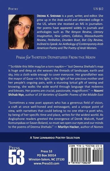 "Sometimes a new poet appears who has a generous field of vision, a craft at once well-honed and extravagant, and a unique point of view, with narratives that could belong to no one else-a poet who, by being of her specific time and place, writes for the widest world. As Anglophone readers greeted the emergence of Derek Walcott, Yusef Komunyakaa or Eavan Boland, so must we open our eyes and our minds to the poems of Deema Shehabi." - Marilyn Hacker, author of Names
