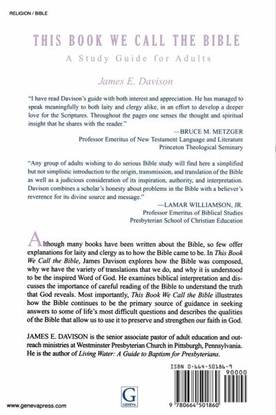 Neither a traditional study of specific books or sections of the Bible, nor a doctrinal study that concentrates on such issues as revelation and authority, "This Book We Call the Bible" helps lay people focus on the use of Scripture. By dealing with the Bible as a written work and its impact on our hearts, this study provides an increased sense of what the Bible actually is and how we can derive more benefit from reading and studying the Scriptures. Great for individuals and for small- or large-group settings, "This Book We Call the Bible" includes questions for reflection and discussion with each chapter.