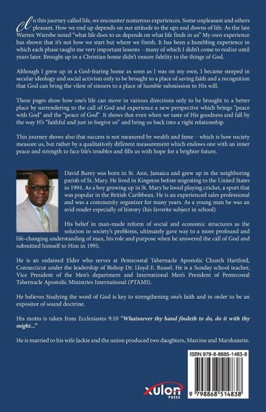 In this journey called life, we encounter numerous experiences. Some unpleasant and others pleasant. How we end up depends on our attitude to the ups and downs of life. As the late Warren Wiersbe noted "what life does to us depends on what life finds in us" My own experience has shown that it's not how we start but where we finish. It has been a humbling experience in which each phase taught me very important lessons - many of which I didn't come to realize until years later. Brought up in a Christian home didn't ensure fidelity to the things of God. Although I grew up in a God-fearing home as soon as I was on my own, I became steeped in secular ideology and social activism only to be brought to a place of saving faith and a recognition that God can bring the vilest of sinners to a place of humble submission to His will. These pages show how one's life can move in various directions only to be brought to a better place by surrendering to the call of God and experience a new perspective which brings "peace with God" and the "peace of God" It shows that even when we taste of His goodness and fall by the way H's "faithful and just to forgive us" and bring us back into a right relationship. This journey shows also that success is not measured by wealth and fame - which is how society measure us, but rather by a qualitatively different measurement which endows one with an inner peace and strength to face life's troubles and fills us with hope for a brighter future. David Burey was born in St. Ann, Jamaica and grew up in the neighboring parish of St. Mary. He lived in Kingston before migrating to the United States in 1994. As a boy growing up in St. Mary he loved playing cricket, a sport that was popular in the British Caribbean. He is an experienced sales professional and was a community organizer for many years. As a young man he was an avid reader especially of history (his favorite subject in school) His belief in man-made reform of social and economic structures as the solution to society's problems, ultimately gave way to a more profound and life-changing understanding of man, his role and purpose when he answered the call of God and submitted himself to Him in 1995. He is an ordained Elder who serves at Pentecostal Tabernacle Apostolic Church Hartford, Connecticut under the leadership of Bishop Dr. Lloyd E. Russel. He is a Sunday school teacher, Vice President of the Men's department and International Men's President of Pentecostal Tabernacle Apostolic Ministries International (PTAMI). He believes Studying the word of God is key to strengthening one's faith and in order to be an expositor of sound doctrine. His motto is taken from Ecclesiastes 9:10 "Whatsoever thy hand findeth to do, do it with thy might..." He is married to his wife Jackie and the union produced two daughters, Marcine and Marshanette.
