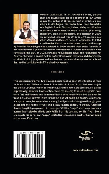 This spectacular story of two wounded souls healing each other breaks all mental boundaries. Willie's success in football culminated in an invitation to join the Dallas Cowboys, which seemed to guarantee him a great future. He played impressively; however, blows of fate were not as easy to resist as sports' rivals were. The indifference and betrayal of loved ones forced Willie into an inner fortress; he lost all interest in life. Changing jobs yet again, he became a janitor at a hospital. Here, he encounters a young immigrant who has gone through great losses and the horrors of war, and is now fighting cancer. At the MD Anderson Cancer Hospital, people call him an angel. Will this "angel" who has preserved a human love inside be able to untie Willie from his past and set him free? Everyone meets his or her own "angel" in life. Sometimes, it is another human being; sometimes it's a book.