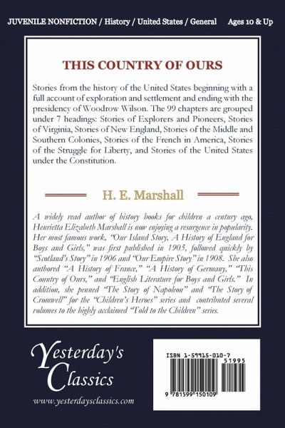 Stories from the history of the United States beginning with a full account of exploration and settlement and ending with the presidency of Woodrow Wilson. The 99 chapters are grouped under 7 headings: Stories of Explorers and Pioneers, Stories of Virginia, Stories of New England, Stories of the Middle and Southern Colonies, Stories of the French in America, Stories of the Struggle for Liberty, and Stories of the United States under the Constitution. Suitable for ages 10 and up.