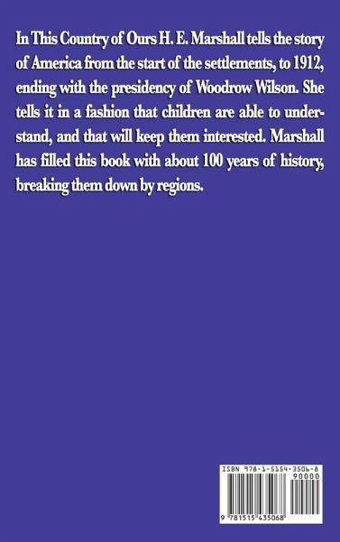 In This Country of Ours H. E. Marshall tells the story of America from the start of the settlements, to 1912, ending with the presidency of Woodrow Wilson. She tells it in a fashion that children are able to understand, and that will keep them interested. Marshall has filled this book with about 100 years of history, breaking them down by regions.