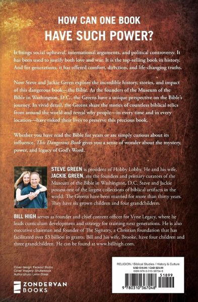 In This Dangerous Book, the founders of the Museum of the Bible in Washington D.C., and plaintiffs in the Supreme Court case Burwell v. Hobby Lobby, Steve and Jackie Green share the history, authenticity, and power of the Bible in this fascinating look at the world's most influential book.