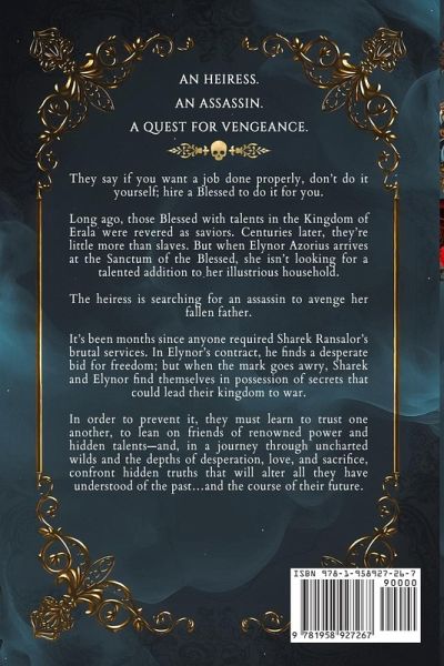 An Heiress. An Assassin. A Quest for Vengeance. They say if you want a job done properly, don't do it yourself; hire a Blessed to do it for you. Long ago, those Blessed with talents in the Kingdom of Erala were revered as saviors. Centuries later, they're little more than slaves. But when Elynor Azorius arrives at the Sanctum of the Blessed, she isn't looking for a talented addition to her illustrious household. The heiress is searching for an assassin to avenge her fallen father. It's been months since anyone required Sharek Ransalor's brutal services. In Elynor's contract, he finds a desperate bid for freedom; but when the mark goes awry, Sharek and Elynor find themselves in possession of secrets that could lead their kingdom to war. In order to prevent it, they must learn to trust one another, to lean on friends of renowned power and hidden talents-and, in a journey through uncharted wilds and the depths of desperation, love, and sacrifice, confront hidden truths that will alter all they have understood of the past...and the course of their future. ¿ THIS DARK ALLIANCE is Book 1 in the adult fantasy duology THE CURSE OF THE BLESSED. This powerful adventure deals with themes of grief, vengeance, loss, healing, self-worth, freedom, mortality, dementia, slavery, and more. There are scenes of violence, explorations of imbalances of power, and depictions of mental health challenges that may be unsettling to some readers. ¿