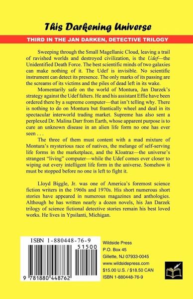 Sweeping through the Small Magellanic Cloud, leaving a trail of ravished worlds and destroyed civilization, is the Udef -- the Unidentified Death Force. The best scientific minds of two galaxies can make nothing of it. The Udef is invisible. No scientific instrument can detect its presence. The only marks of its passing are the screams of its victims and the piles of dead left in its wake. Momentarily safe on the world of Montura, Jan Darzek's strategy against the Udeffalters. He and his assistant Effie have been ordered there by a supreme computer -- that isn't telling why. There is nothing to do on Montura but frantically wheel and deal in its spectacular interworld trading market. Supreme has also sent a perplexed Dr. Malina Darr from Earth, whose apparent purpose is to cure an unknown disease in an alien life form no one has ever seen ... The three of them must content with a mad mixture of Montura's mysterious race of natives, the melange of self-serving life forms in the marketplace, and the Kloatraz -- the universe's strangest "living" computer -- while the Udef comes ever closer to wiping out every intelligent life form in the universe. Somehow it must be stopped before no one is left to fight it.