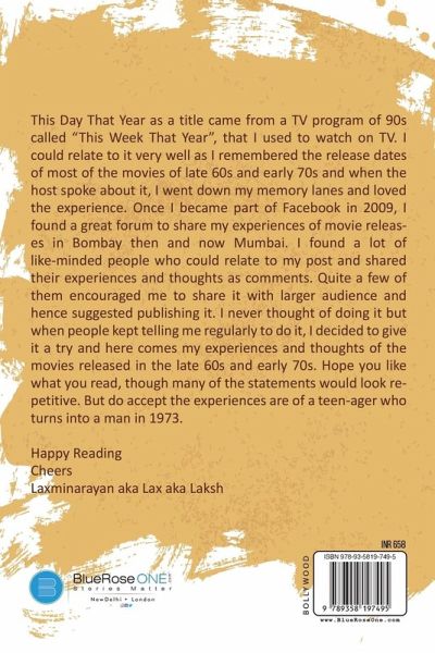 This Day That Year as a title came from a TV program of the 90s called "This Week That Year", that I used to watch on TV. I could relate to it very well as I remembered the release dates of most of the movies of the late 60s and early 70s and when the host spoke about it, I went down my memory lane and loved the experience. Once I became part of Facebook in 2009, I found a great forum to share my experiences of movie releases in Bombay then and now Mumbai. I found a lot of like-minded people who could relate to my post and shared their experiences and thoughts as comments. Quite a few of them encouraged me to share it with a larger audience and hence suggested publishing it. I never thought of doing it but when people kept telling me regularly to do it, I decided to give it a try, and here comes my experiences and thoughts of the movies released in the late 60s and early 70s. Hope you like what you read, though many of the statements would look repetitive. But do accept the experiences of a teenager who turns into a man in 1973.