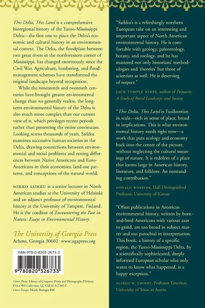 This Delta, This Land is a comprehensive environmental history of the Yazoo-Mississippi Delta--the first one to place the Delta's economic and cultural history in an environmental context. The Delta, the floodplain between two great rivers in the northwestern corner of Mississippi, has changed enormously since the Civil War. Agriculture, lumbering, and flood-management schemes have transformed it beyond recognition--and beyond any prospects for a full recovery. However, says Mikko Saikku, the 150 years following the Civil War brought greater environmental change than we generally realize. Also, the long-term environmental history of the Delta is much more complex than our current view of it, which privileges recent periods rather than presenting the entire continuum. Looking across thousands of years, Saikku examines successive human societies in the Delta, drawing connections between environmental and social problems and noting differences between Native Americans and Euro-Americans in their economies, modes of production, and land-use patterns. Saikku's range of sources is astonishing: travel literature, naturalists' writings, government records, company archives, archaeological data, private correspondence, and more. As he documents how such factors as climate and water levels shaped the Delta, he also reveals the human aspects of the region's natural history, including land reclamation, slave and sharecropper economies, ethnic and racial perceptions of land ownership and stewardship, and even blues music.