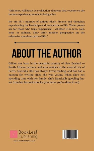 ""this heart still beats' is a collection of poems that touches on the human experience; an ode to being alive. We are all a mixture of unique ideas, dreams and thoughts; experiencing the hardships and prosperities of life. These poems are for those who truly 'experience' - whether it be love, pain, hope or sadness. They offer another perspective on the otherwise mundane parts of life.""
