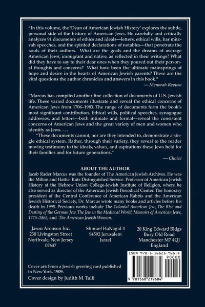 Ninety-one letters, ethical wills, bar mitzvah speeches, and other personal records are presented in chronological order following an interpretive essay on the ethical aspirations of American Jewry.