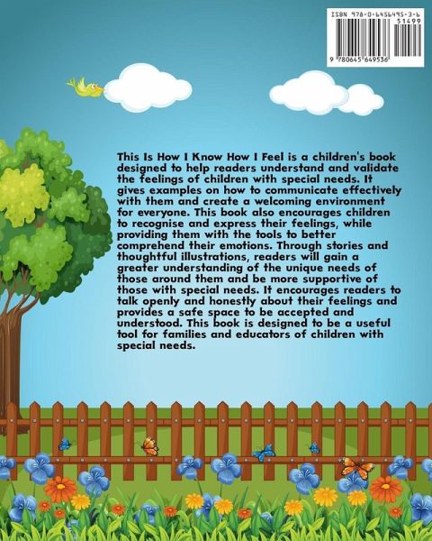 This Is How I Know How I Feel is a children's book designed to help readers understand and validate the feelings of children with special needs. It gives examples on how to communicate effectively with them and create a welcoming environment for everyone. This book also encourages children to recognise and express their feelings, while providing them with the tools to better comprehend their emotions. Through stories and thoughtful illustrations, readers will gain a greater understanding of the unique needs of those around them and be more supportive of those with special needs. It encourages readers to talk openly and honestly about their feelings and provides a safe space to be accepted and understood. This book is designed to be a useful tool for families and educators of children with special needs.