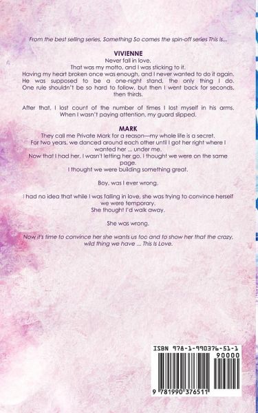 From the best selling series, Something So comes the spin-off series This is... Vivienne Never fall in love. That was my motto, and I was sticking to it. Having my heart broken once was enough, and I never wanted to do it again. He was supposed to be a one-night stand, the only thing I do. One rule shouldn't be so hard to follow, but then I went back for seconds, then thirds. After that, I lost count of the number of times I lost myself in his arms. When I wasn't paying attention, my guard slipped. Mark They call me Private Mark for a reason-my whole life is a secret. For two years, we danced around each other until I got her right where I wanted her ... under me. Now that I had her, I wasn't letting her go. I thought we were on the same page. I thought we were building something great. Boy, was I ever wrong. I had no idea that while I was falling in love, she was trying to convince herself we were temporary. She thought I'd walk away. She was wrong. Now it's time to convince her she wants us too and to show her that the crazy, wild thing we have ... This Is Love.