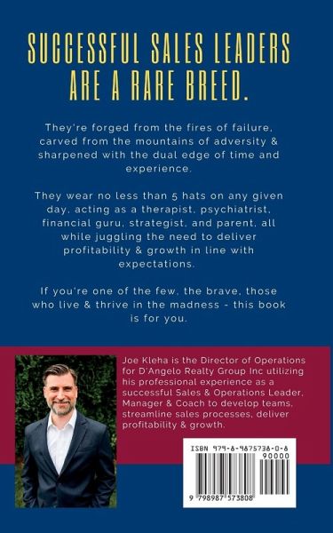 Successful sales leaders are a rare breed. They're forged from the fires of failure, carved from the mountains of adversity & sharpened with the dual edge of time and experience. They wear no less than 5 hats on any given day, acting as a therapist, psychiatrist, financial guru, strategist, and parent, all while juggling the need to deliver profitability & growth in line with expectations. If you're one of the few, the brave, those who live & thrive in the madness - this book is for you.