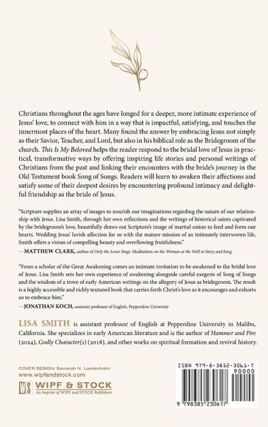 Christians throughout the ages have longed for a deeper, more intimate experience of Jesus' love, to connect with him in a way that is impactful, satisfying, and touches the innermost places of the heart. Many found the answer by embracing Jesus not simply as their Savior, Teacher, and Lord, but also in his biblical role as the Bridegroom of the church. This Is My Beloved helps the reader respond to the bridal love of Jesus in practical, transformative ways by offering inspiring life stories and personal writings of Christians from the past and linking their encounters with the bride's journey in the Old Testament book Song of Songs. Readers will learn to awaken their affections and satisfy some of their deepest desires by encountering profound intimacy and delightful friendship as the bride of Jesus.