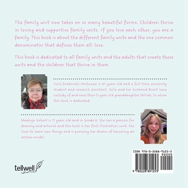 The family unit now takes on so many beautiful forms. Children thrive in loving and supportive family units. If you love each other, you are a family. This book is about the different family units and the one common denominator that defines them all: love. This book is dedicated to all family units and the adults that create these units and the children that thrive in them.