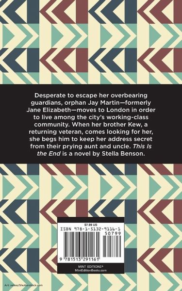 This Is the End (1917) is a novel by Stella Benson. Based on the author's experience in the movement for women's suffrage, This Is the End is a story of identity and social class set in the London neighborhood of Hackney. As Jay attempts to break from her restrictive past, her brother Kew returns from the First World War scarred by his experiences and disillusioned with life at home. Benson's meditative, diaristic prose guides the reader along the paths of change and confrontation faced by her protagonists, immersing them in the tumultuous decade in which the novel was written. "This is the end, for the moment, of all my thinking, this is my unfinal conclusion. There is no reason in tangible things, and no system in the ordinary ways of the world. Hands were made to grope, and feet to stumble, and the only things you may count on are the unaccountable things. System is a fairy and a dream, you never find system where or when you expect it. There are no reasons except reasons you and I don't know." Guided by a philosophical sense of the world, Jay-formerly Jane Elizabeth-longs to escape the confines of her life in the countryside. Without telling her family, she leaves for London and adopts a new identity, exposing herself for the first time in her life to the rhythms of working-class existence. When her brother Kew returns from the Great War and fails to find her at home, he comes to the city in search of his sister. Bonded by tragedy, the two orphans grow to respect one another as adults, both of them scarred in their own way by the expectations placed on young men and women in a decade of tremendous cultural change. This edition of Stella Benson's This Is the End is a classic work of British literature reimagined for modern readers. Since our inception in 2020, Mint Editions has kept sustainability and innovation at the forefront of our mission. Each and every Mint Edition title gets a fresh, professionally typeset manuscript and a dazzling new cover, all while maintaining the integrity of the original book. With thousands of titles in our collection, we aim to spotlight diverse public domain works to help them find modern audiences. Mint Editions celebrates a breadth of literary works, curated from both canonical and overlooked classics from writers around the globe.