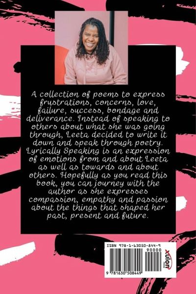 Leeta wrote This is the Lord's Doing Lyrically Speaking to express frustrations, concerns, love, failure, success, bondage and deliverance. Instead of speaking to others about what she was going through, she decided to write it down and speak through poetry. Lyrically Speaking is an expression of emotions from and about Leeta as well as towards and about others. Hopefully as you read this book, you can journey with the author as she expresses compassion, empathy and passion about the things that shaped her past, present and future.