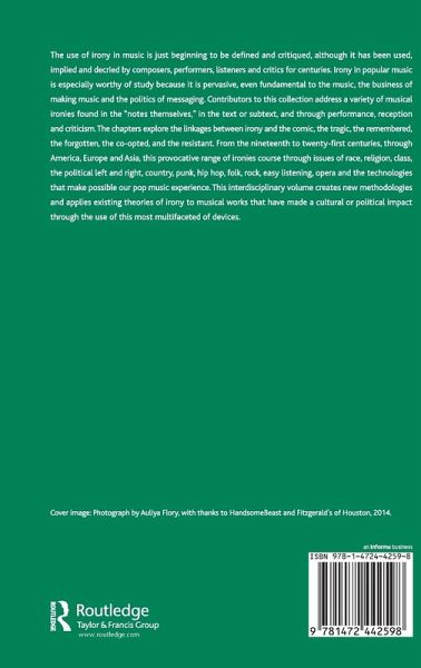 The use of irony in music is just beginning to be defined and critiqued, irony in popular music being especially worthy of study because it is pervasive, even fundamental to the music, the business of making music and the politics of messaging. Contributors to this collection address a variety of musical ironies found in the 'notes themselves,' in the text or subtext, and through performance, reception and criticism. This interdisciplinary volume creates new methodologies and applies existing theories of irony to musical works that have made a cultural or political impact through the use of this most multifaceted of devices.