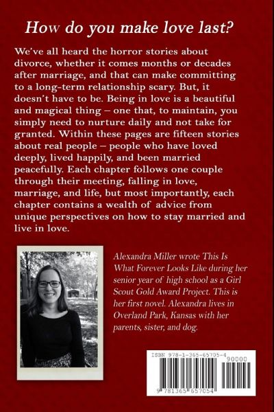This book represents a series of interviews conducted by Alexandra Miller with married couples about their stories and their advice on how to make marriage last. Each chapter contains a love story and advice from unique perspectives.