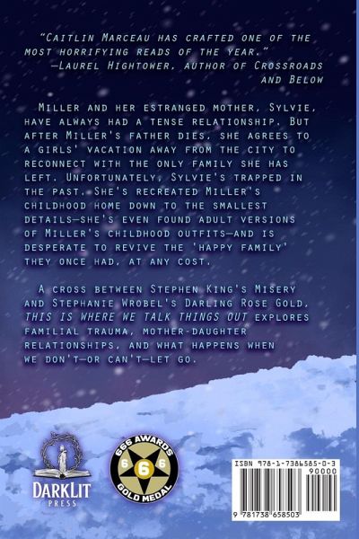 This Is Where We Talk Things Out by Caitlin Marceau, author of Palimpsest: A Collection of Contemporary Horror follows the gut-wrenching journey of Miller and her estranged mother, Sylvie, who has always had a tense relationship. After Miller's father dies, she agrees to a girls' vacation away from the city to reconnect with the only family she has left. Although she's eager to make things work, Miller can't help but worry that her mother is seeing their countryside retreat as a fun weekend getaway instead of what it really is: a last-ditch effort to repair their relationship. Unfortunately, that quickly becomes the least of Miller's problems. Sylvie's trapped in the past and if Miller's not careful, she will be too. A cross between Stephen King's Misery and Stephanie Wrobel's Darling Rose Gold, This Is Where We Talk Things Out explores the horror of familial trauma, mother-daughter relationships, and what happens when we don't let go.
