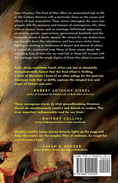 Iconoclastic, deftly crafted, original, memorable and thought-provoking, each one of the short stories comprising "This Kind of Man" is raised by author Sean Murphy to an impressive level of literary excellence. -Midwest Book Review "This Kind of Man, a suite of dramatic monologues and meditations, seems to pick up where Raymond Carver left off: anatomizing all the ways that American masculinity finds itself adrift, with a special thought for the women in the same lifeboat. Murphy sees how we live so plainly and clearly that, in the best possible way, it hurts."-Louis Bayard, author of The Pale Blue Eye THIS KIND OF MAN offers an unvarnished look at life in 21st Century America, excavating the complicated, tender, wild truth of what it is to be a man across generations and relationships. These stories interrogate the pressures and tensions of contemporary life, and the ways men grapple with them, often without success. Issues such as marriage, fatherhood, aggression, alcoholism, gender expectations, generational backlash, and the inexorable dread of death, abound. Many of these stories live within a slow implosion of coping, and often failing, as well as those who refuse to succumb, addressing concerns oft-discussed, or not discussed enough, in mainstream print: gun violence, the recent history of coal country Appalachia, sports-related concussions, illegal immigration (and the jobs many of these ostensibly unwelcome folks are obliged to do), homelessness, and the inability of men to honestly connect or communicate. Far from excusing or exonerating toxic males, this collection locates their violence (toward others, against oneself) in the context of a deadening culture and the false narratives that prevail in an exploitative, zero-sum game capitalist model, where those without are encouraged to quarrel with similarly overworked and underpaid, mostly blue-collar workers. We see that our received notions of manhood and masculinity are inculcated-from the beginning and by design-to ensure willing participation in a system where the overwhelming majority are excluded from the start. We witness the way these dysfunctions are handed down like inheritance, and how every cliché, from fighting to drinking to intolerance of dissent and distrust of others, is a carefully constructed trap, preventing solidarity, empathy, and love (for others, for one's self).