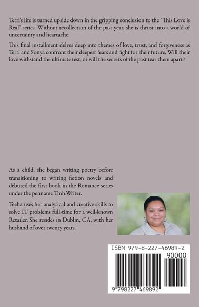 Terri's life is turned upside down in the gripping conclusion to the "This Love is Real" series. Without recollection of the past year, she is thrust into a world of uncertainty and heartache. Terri's journey to reclaim her memories is fraught with tension and raw emotion. As she pieces together her past, she grapples with the fear that revealing the truth to Sonya could drive them apart forever. Haunted by her love for Sonya, Terri must find a way to heal the rift between them. This final installment delves deep into themes of love, trust, and forgiveness as Terri and Sonya confront their deepest fears and fight for their future. Will their love withstand the ultimate test, or will the secrets of the past tear them apart?