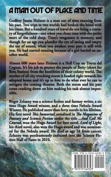Godfrey Justin Holmes is a man out of time running from his past. Two trips to two worlds had broken the bond with his times. But a hundred years of travel do not bring a century of forgetfulness-not when you cheat time with the petite mort of the cold sleep. Time's vengeance is memory, and though for an age you plunder the eye of seeing and empty the ear of sound, when you awaken your past is still with you. He had started running because of a girl buried on another world. Almost 600 years later Holmes is a Hell Cop on Tierra del Cygnus. It's his job to protect the people of Betty (short for Beta Station) from the hostilities of their colony world. The mother of all city wrecking storm is headed right towards his adopted home and it's up to him to do what ever he can to mitigate the coming disaster. Both the storm and his past come crashing down on him making his task almost impossible. Roger Zelazny was a science fiction and fantasy writer, a six time Hugo Award winner, and a three time Nebula Award Winner. He published more than forty novels in his lifetime. His first novel This Immortal, serialized in The Magazine of Fantasy and Science Fiction under the title ...And Call Me Conrad, won the Hugo Award for best novel. Lord of Light, his third novel, also won the Hugo award and was nominated for the Nebula award. He died at age 58 from cancer. Zelazny was posthumously inducted into the Science Fiction Hall of Fame in 2010.